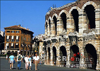 维罗纳(Verona)位于意大利北部,是有着25万人口的意大利中等城市,它北靠阿尔卑斯山,西临经济重镇米兰,东接水城威尼斯,南通首都罗马,从地理位置上看,它算得上是最好的军事要塞,跟意大利众多古城一样,维罗纳也有着悠久的历史,城内至今依然保存着从古代、中世纪一直到文艺复兴时期的大量纪念碑和一座完好的斗兽场。在过去漫长的岁月中,这座写满仇恨和战争历史的小城一直被人们看作军事重镇、历史古城。