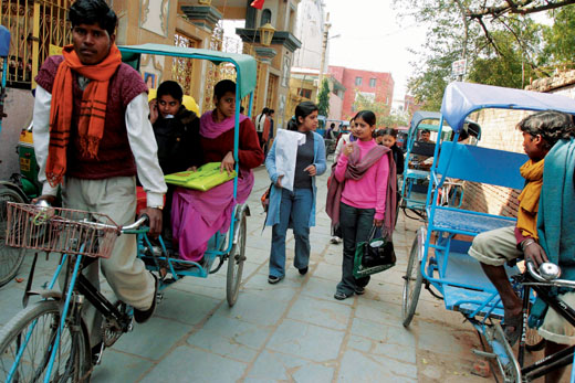 最容易接受新事物的似乎总是青少年。在德里,改变服装的风潮象蘑菇云一样地扩散,笼罩市区内外。两个较为偏远的地区——Qutub minar enclave和Mehrauli尤其值得一看。最有趣味的是那里一半都市一半乡间的布局:一路走去,沿途是丰收在望的芒果园、长途汽车终点站以及皇家陵墓公园……而这样的景色中,却随处可见一些充满现代气息的服装店和小型商业中心。这就是德里南部的时尚之都,用4x4米的烟玻璃装饰的商铺穿插于大型豪华农场和小型家庭农舍之间,每天都吸引一大群有钱的顾客,到这里来寻找时尚杂志上看到的新款服饰。这里购物氛围轻松,不过价格不菲。一件Kurti(传统女式上衣,由男式传统上装Kurta演变而来)要3000卢布,约合600人民币,相当于那里一个普通城市居民半个月的工资。