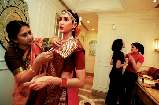 事实上,印度时装界的确有一批优秀的设计师,包括Rohit Bal, Tarun Tahiliani, JJ Vallaya等。不过,这些大设计师主要为婚礼设计礼服,在沙丽上用精致的刺绣,还有Swarovski的金片和水晶做装饰,价值65000卢布,约合13000人民币。虽然高贵美丽,却无法贴近大众。