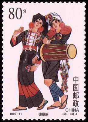 过去,德昂族还有漆齿纹身之俗。一般在手臂,大小腿和胸部刺以虎、鹿、马、花草等动植物图案或傣文经咒。