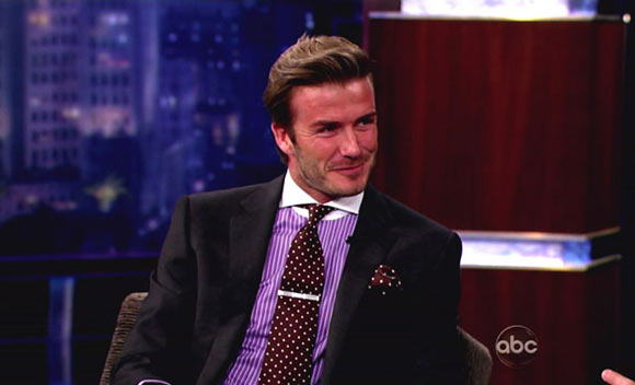 大卫-贝克汉姆(David Beckham)。紫色圆点图案散发迷人气息。