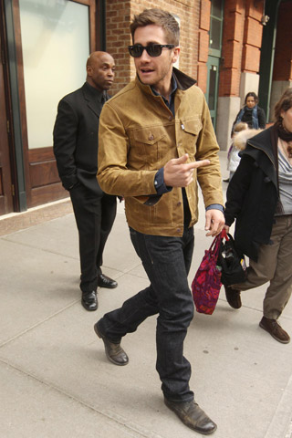 杰克-吉伦希尔(Jake Gyllenhaal)。立领短款夹克展现男人帅气本色。