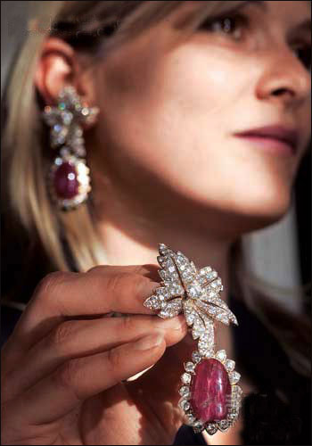¡¡¡¡ÂÛ»éÖ®³õ£¬Ô¼º²¡¤¿ÏÄáµÏΪÁËÏòJacquelineµÄ·¨¹úѪͳÖ¾´£¬Ôù¸øËýÒ»¶ÔË®µÎÐÎȦ״Ëé×ê¶ú»·×÷Ϊ¶©»éÀñÎï¡£¶øJacqueline±¾ÈË×îÕä°®µÄÒ»¶Ô¶ú»·£¬ÔòÊǵڶþÈÎÕÉ·ò´¬Íõ°ÂÄÉÎ÷˹µÄ½á»éÔùÀñ£ºÒ»Ì××êʯ»¨Ò¶Ðζú»·¼°ÓëÖ®´îÅäµÄ¿É²ðжÍÖÔ²ºì±¦Ê¯¶ú×¹¡£ËýÇ×êǵسÆÕâÌ×¶ú»·Îª¡°Îҵĺ챦ʯ¡±£¬²¢ÇÒÒ»Ö±´Ó40Ëê´÷µ½60Ëê¡£