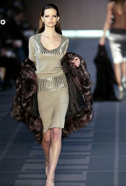 拉格菲尔德对毛皮进行革新处理,如将真正的动物毛皮处理成有着仿制毛皮的外观效果;在毛皮面料上打上大量细小的洞眼以减轻大衣的重量便于穿着;毛皮的多彩染色处理等。其创新设计还包括用水貂皮作边饰的牛仔面料大衣,选用如松鼠皮、雪貂皮等非常用毛皮进行大胆设计。