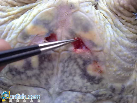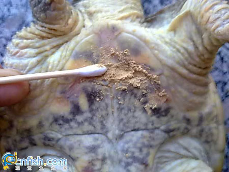 上完药等干了,别沾水,几个小时后放鱼缸里,每天换药一次,愈合为止。