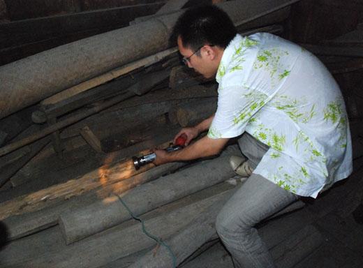日前,温州市平阳县腾蛟镇联源村一村民向该县文物馆反映县级文物保护单位苏振音宅有白蚁活动的痕迹。县文物馆接到通知后,主动联系县白蚁防治所一同前往现场实地踏勘。白蚁防治所专业人员对该宅的梁架、柱子、门窗、地袱等构件进行了详细的观察后,认为此白蚁属台湾乳白蚁(又称家白蚁),具有破坏性强,难治理的特点。在现场发现了一些梁架、木板上有许多分飞孔,部分构件已蛀空,存在较大的安全隐患。根据现场勘查情况,防治所工作人员制定了一套治理对策并对白蚁巢穴直接施药,治理面积约900平方米。