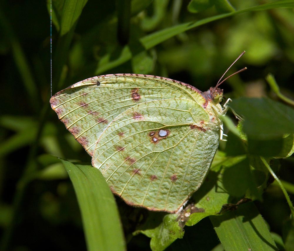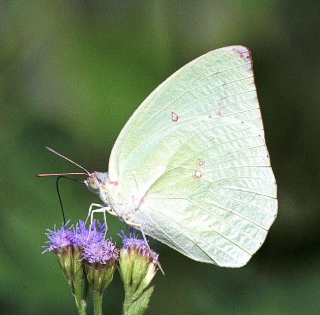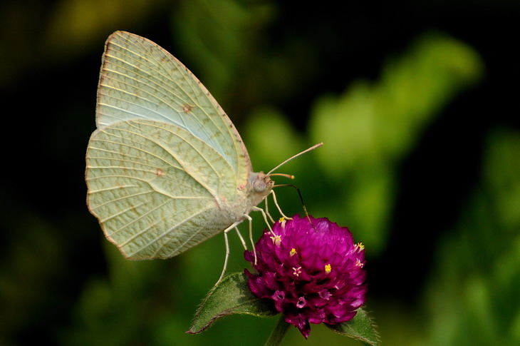 翅展65mm,体黑色被白色鳞毛,翅白色,前翅顶角黑色, 前翅中部具黑斑点。翅反面散布有褐色细纹。成虫喜欢访花,飞行极迅速,活动于林缘开阔地。