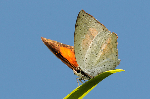 雄翅面黑褐色,前翅中区、后翅外端有桔红色斑纹;雌翅面为黑底白斑纹。雌雄翅里银白色。秋、冬翅形较尖,翅面斑纹大而明显。多在低山、平地溪流旁栖息,飞翔迅速,常吸食动物粪便和腐果汁液。翅展38m
