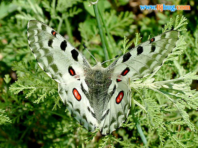 翅白色,半透明。前翅翅基及前缘布有一层黑色鳞片。中室中部及横脉处各有1黑色斑。后翅外缘有淡黑色断续带纹。它翅展58--88mm。