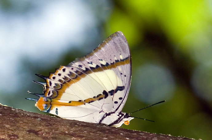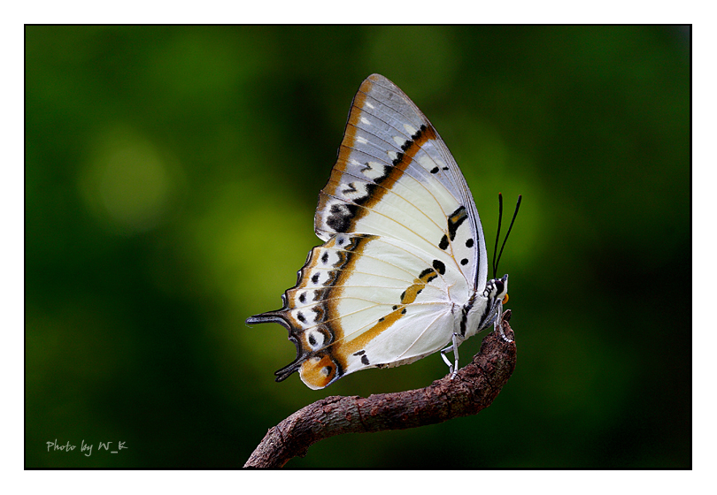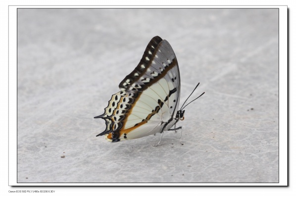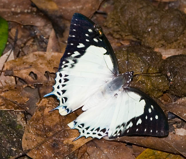 翅面乳白色,前翅中室至前缘,亚外缘以外及基部黑色。前翅反面中室端附近无“Y”纹,中室内2个黑斑略呈纵向排列,中室外两侧各有1个黑点。 生活在热带山地雨林、山顶苔藓矮林。