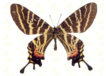 它的前翅有8条黑色并伸至后翅翅表的横带,外缘带宽阔;后翅较长,外缘呈扇形,臂角处有一个深的缺刻,具3个尾状突起,外面的一个最长,里面的一个次长,中间的一个很短而不易见到,因而叫它双尾褐凤蝶。这种凤蝶,自30年代在云南西部发现后,直到1981年一月日本北海道登山队员才在我国贡嘎山再次发现,是世界珍奇蝶种中最珍奇的蝴蝶之一。
