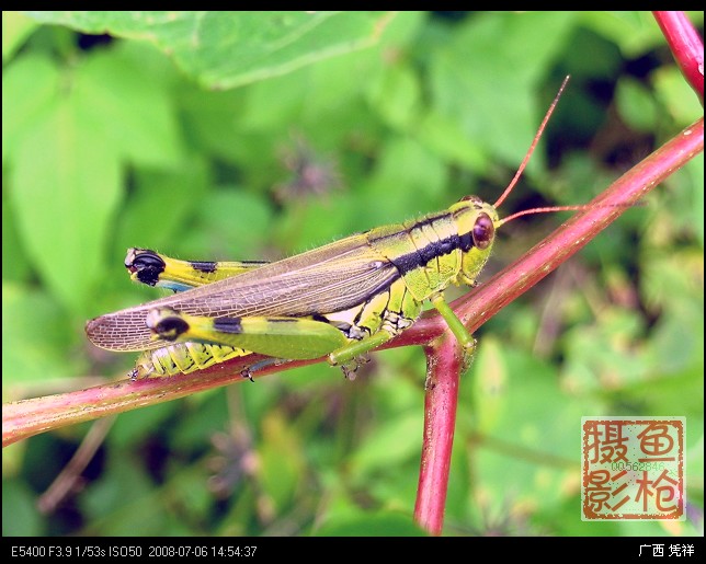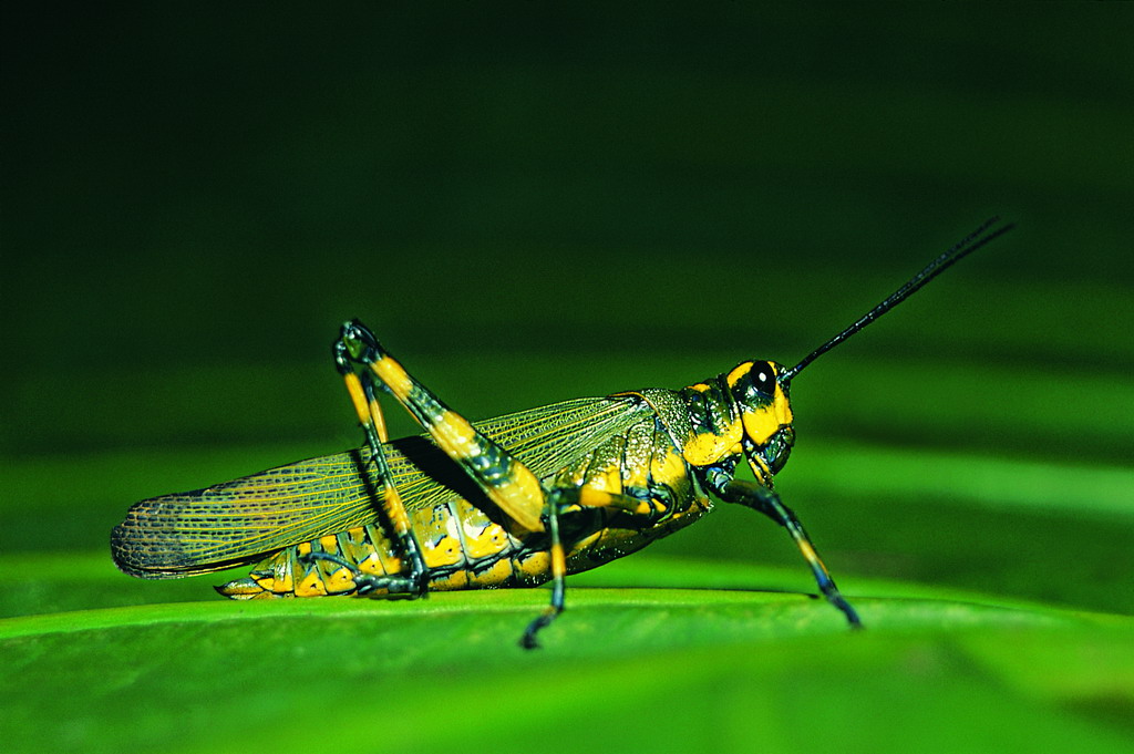 成虫雌体长36mm~44m。雄体30mm-33mm;全身绿色或黄绿色,左右各侧有暗褐色纵纹,从复眼向后,直到前胸背板的后缘。体分头、胸、腹三体部。主要为害水稻、玉米、高粱、麦类、甘蔗和豆类等多种农作物。对作物的为害是以成、若虫咬食叶片,咬断茎秆和幼芽。水稻被害叶片成缺刻,严重时稻叶被吃光,也能咬坏穗颈和乳熟的谷粒。