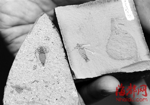 2月29日,黄迪颖研究员展示其发现的中生代“巨型跳蚤”化石