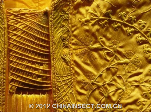 这件披肩虽然古怪并且非常让人吃惊,但却是华丽无比的。从6月5日开始在伦敦维多利亚和艾伯特博物馆的“金色蜘蛛丝”展会上公开展出的这件披肩,是由蜘蛛织网用的蛛丝构成。色彩是完全的自然色:完全是蛛丝本身所流露出的颜色。