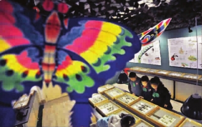 翩跹的蝴蝶,日前成群“飞”进卢湾第一中心小学。在上海青少年科技探索馆和上海昆虫馆支持下,学校“哈哈昆虫总动员”向学生开放。孩子们除了可以参观昆虫馆提供的各类标本模型,还能在互动区学做昆虫标本,探究有趣的昆虫世界。图为蝴蝶造型的风筝和馆内的蝴蝶标本相映成趣