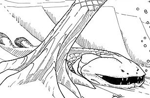当前的所有鱼类都要感谢4.15亿年前到3.6亿年前泥盆纪时期的“水生动物大爆发”,也被称之为属于鱼类的时代。在加拿大努勒维特的埃尔斯米尔岛,科学家发现了鱼类祖先Laccognathus embryi的化石遗骸,它们一度生活在加拿大北极地区的浅水域。Laccognathus的体型并不算巨大,身长在5到6英尺(约合1.52到1.82米)之间。它们懒洋洋地潜伏在浅水域,静等猎物上门。它们的外形非常丑陋,头部又扁又宽,小眼睛圆圆的,颚部宽大,给人一种邪恶的感觉。它们的牙齿巨大并且非常锋利。