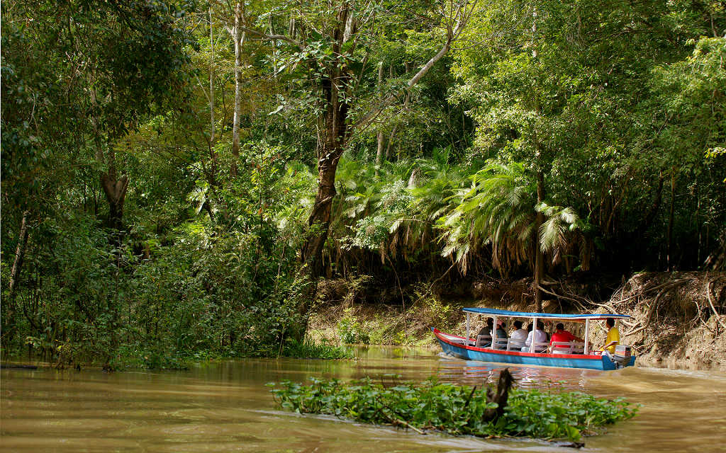 来亚马逊的游客都抱着同一目的:最近距离接近甚至接触野生动物。亚马逊河水系跨赤道南北,终年高温多雨,物种丰富,还有海牛、淡水豚、鳄鱼、巨型水蛇等庞然大物。亚马逊河最著名的是其多达2000余种的世界淡水观赏鱼,一路下来,在导游孜孜不倦地解说下,那些多彩的鱼儿我们基本都耳熟能详了。