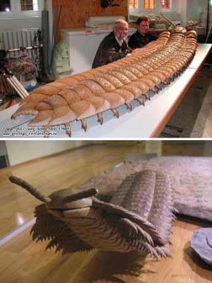 迄今为止发现的最大远古蝎类为上图展示的广翅深海蝎。这种深海蝎生活在4.6亿至2.55亿年前,身长约为8英尺(约2.4米),生性凶猛,在远古时代为海洋一霸。