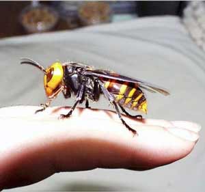 日本大黄蜂是种毒性极强的蜂类动物。成年日本大黄蜂体长约1.6英寸(4厘米),翼展约2.5英寸(6厘米)。这种大黄蜂被日本当地居民称之为“****雀蜂”。日本国内平均每年因受这种大黄蜂攻击而死亡的人数为40人。日本大黄蜂脾气极其暴躁,尾部带有一根长约0.25英寸(合6.25毫米)的毒刺,飞行时速可达每小时25英里(合40千米)。