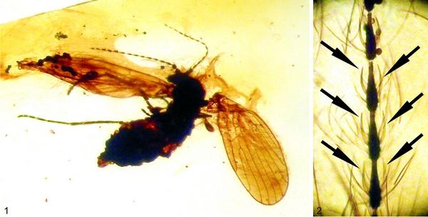 近日,中国科学院南京地质古生物研究所王博博士、张海春研究员等首次在抚顺琥珀中发现双翅目蛾蚋科昆虫,同时发现与昆虫伴生的还有孢粉、有壳变形虫(testate amoeba)等微体化石。该成果发表于近期的Journal of Paleontology,文中也详细总结了中国主要琥珀产地以及蛾蚋科的Trichomyiinae亚科昆虫化石记录。