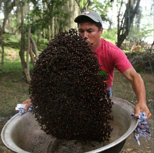 每年4月到6月间,在哥伦比亚北部的桑坦德省,成千上万的蚁农开始采收蚂蚁。蚁农采收的蚂蚁不是一般的小蚂蚁,而是一种尾部十分肥大的蚂蚁,当地人称之为“豪米加·库伦纳”,意思是“大臂部蚁后”。
