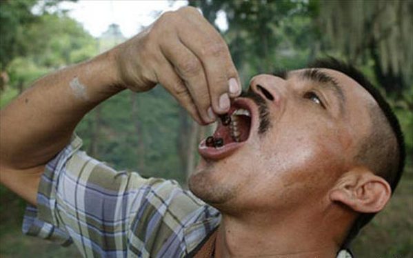 在桑坦德省,“大臂部蚁后”是一种十分美味的食品,当地人一般炒着吃。抓一把炒熟的蚂蚁放在嘴里大口大口地咀嚼时,会感到酥脆无比、浓香四溢。