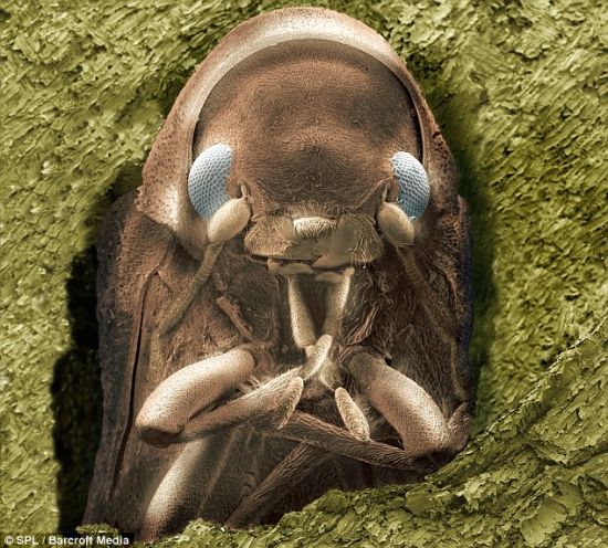 为了拍摄3D昆虫照片,克施迈斯内尔必须采用一种非常特殊的设备。他说:“这种设备名叫‘扫描电子显微镜’,它使用电子而不是光线呈现3D图像。电子是非常微小的带电粒子,环绕原子运动,原子构成了我们看到和接触到的一切事物。覆盖一层薄金层或者铂层的昆虫能够反射电子,否则的话,它们会在这一过程中被加热直到死亡。所有这一切都在真空环境下进行,电子能够像光束一样移动,产生图像。”
