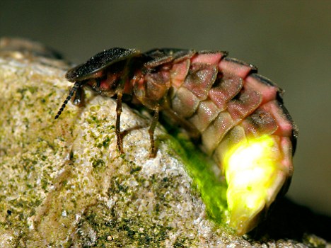 Only adult females glow – emitting an ethereal, bright green light from the base of their abdomens – to attract the flying males.