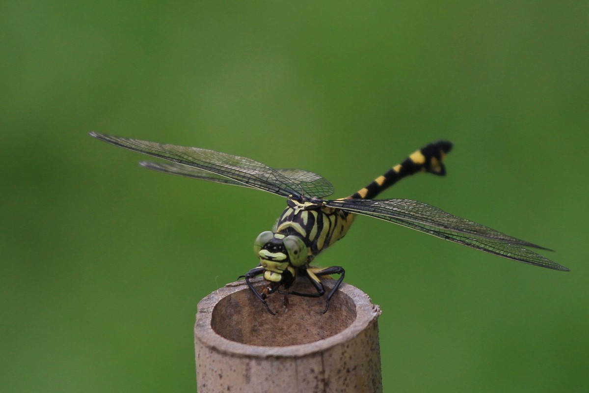 王女士40多岁,幼时长在乡下,网蜻蜓扑蚂蚱的事没少干,凭借多年的生活经验,她很快就发现这只蜻蜓很不寻常。一般来说,每只蜻蜓都有一条光溜溜的尾巴,但这只蜻蜓很特别,尾巴末梢突生一对半圆的“尾翼”,看上去就像一个汽车方向盘!