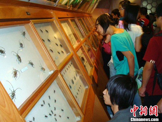 7月4日,昆明动物博物馆正在进行的“走近昆虫”专题展览吸引了来自全国各地的昆虫迷,700余种昆虫标本首次与观众“亲密接触”。图为来自中国科技大学的学生参观展览。