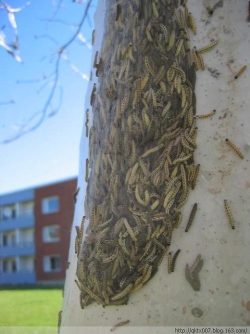 看到一条毛毛虫已经让人不舒服,如果是成千上万的毛毛虫大军铺天盖地而来那种感受可想而知,其超强的恐怖破坏力也同样让人震惊!这种只能在灾难片中看到的场景,让本博毛骨悚然!是不是已经感到浑身发痒了!