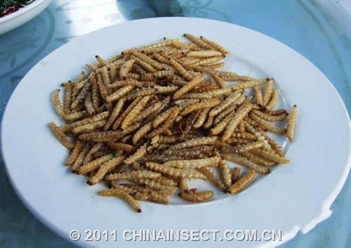 蜂蛹是湘西民间小酌常见的下酒菜。以胡蜂的蛹为主要原料(金环胡蜂蛹为最佳)。烹制时,先将蜂蛹从蜂巢中取出,捡去杂质,用清水漂洗一遍,滤干,倒入油烧至七八成熟的油锅内,用文火把蜂蛹煎至金黄色时,加入少许食盐,便装盘供食。这道菜,色泽金黄或淡黄,香气扑鼻,蛹体外脆里嫩,味美可口,属高蛋白低脂肪美食。很多时候,在湘西餐桌上可以见到蜂蛹和成年峰油炸在一起。