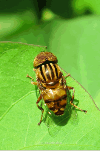 食蚜蝇与我们经常见到的苍蝇是近亲,它们的幼虫长得很像,而生活习性却大不相同。众所周知,苍蝇的幼虫总是在一些不太干净的地方活动,而大部分食蚜蝇的幼虫却只在植物上生活,它们和瓢虫、草蛉一样,喜欢捕食蚜虫,因而得名食蚜蝇。