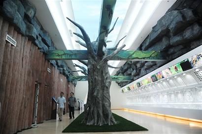 在展厅内的“巨树”参考电影《阿凡达》场景设计制作。博物馆正式开放后,树上将有一万多米专用光纤构建的树叶闪闪发光,极具视觉冲击力。