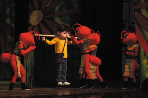 该剧的舞台美术为小朋友们营造一个梦幻般的世界。小朋友们走进剧场就会感受到仿佛如爱丽丝仙境般的奇幻美妙的昆虫王国。每一个小朋友就像一只可爱的小虫子一样观察这个梦幻的昆虫世界。在这里,小朋友们可以看到夸张放大的一草一木一花一果。