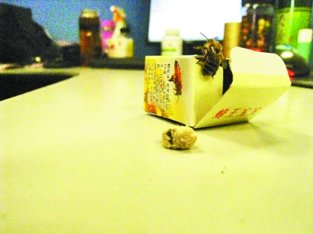 在纬一路小学附近,一家商店打出了售“蜂王宝宝”的招牌。记者看到,很小的纸盒子里装着两个小蜂卵。产品说明写着:“内装蜂王一对,不蜇人,3至5天蜂王出生,以花粉和白糖为食,七天后陆续产卵8枚,如果想让蜂王马上出生,可用剪刀把卵剪开,放在手中即飞。”