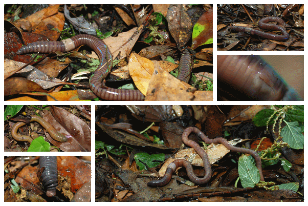 蚯蚓的颜色大多都是紫红色的,但有一种是绿黑色的,身体表面会散发出一股透明的绿色萤光来,这种蚯蚓看着很吓人,一般是比较阴暗潮湿的地方,如破屋子的墙角下掘到的,翻开鱼塘边的大石头底下,大都是这种青绿色的蚯蚓。这种蚯蚓很不讨钓鱼的人喜欢,因为认为青蚓味道差,钓不到鱼,而且在我们那里还有人说,这种蚯蚓日后是变成水蛭的,而水蛭是个生活在水里的非常令人恐怖的吸血的软体动物,所以很多人都特怕这种青色的蚯蚓,翻到青蚓就赶紧的走,免得它会钻到人的身体里吸血。