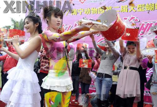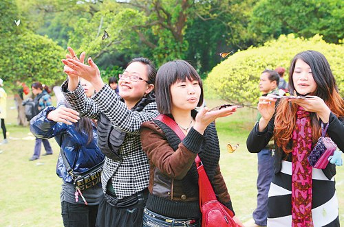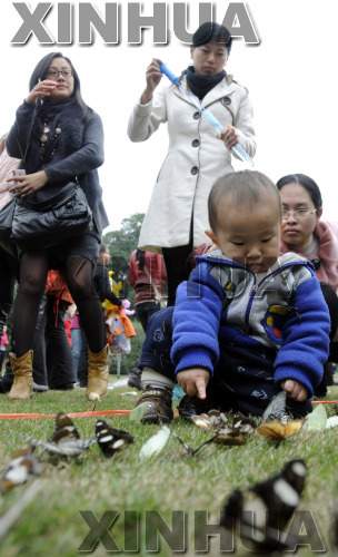 当日,广西南宁市南宁动物园举行“万只蝴蝶放飞”活动,60多个品种、上万只色彩斑斓的蝴蝶不仅让市民大开眼界,也让动物园成为蝴蝶的海洋,活动吸引了近千名市民前来观看。