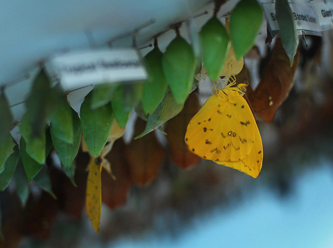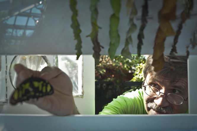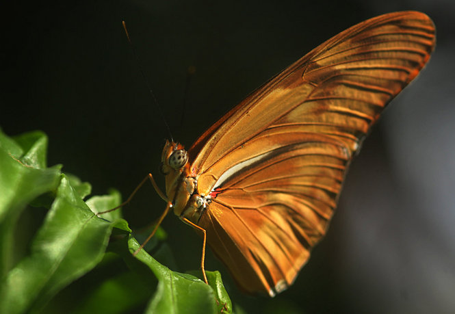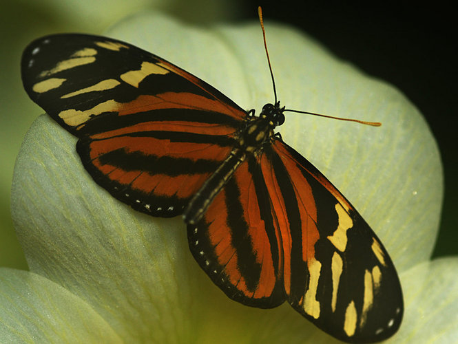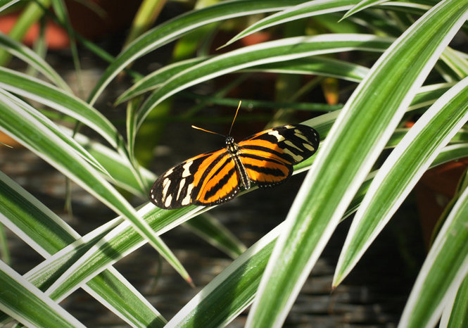 An isabella longwing butterfly rests on a flower Tuesday morning at the Dow Gardens conservatory in Midland. The Dow Gardens brings in thousands of colorful butterflies from Costa Rica and the southern United States each year for the Butterflies in Bloom festival. The festival opens on March 4 and continues through April 24.