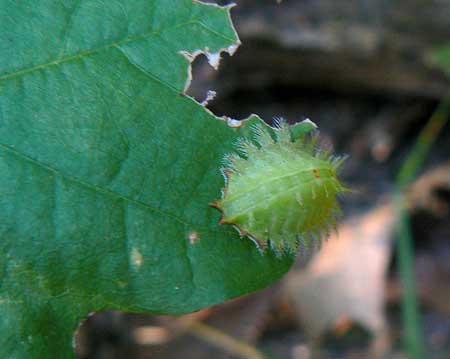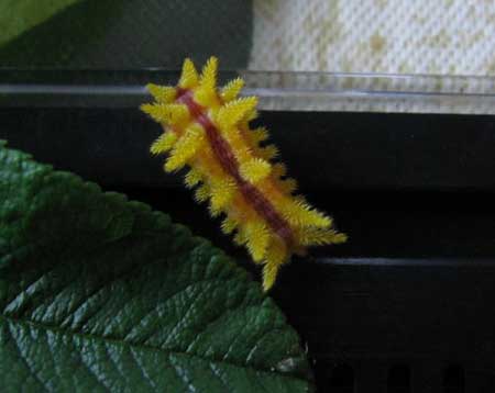 大多数叮人的毛毛虫最终都会变为蛾子,不过这只“丑小鸭”将来会出落成一只美丽的蝴蝶。因其以榆树叶为生,被称为“带刺榆树虫”。在湿地、森林边缘、城市公园都会见到。