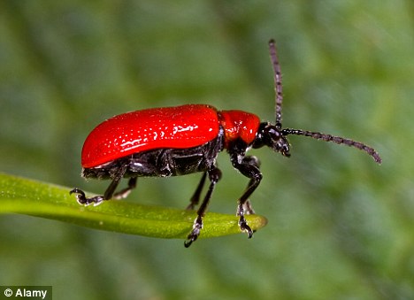 图2血色百合甲虫:这种昆虫之前只发现与英格兰南部,现已传播到英国其他地区