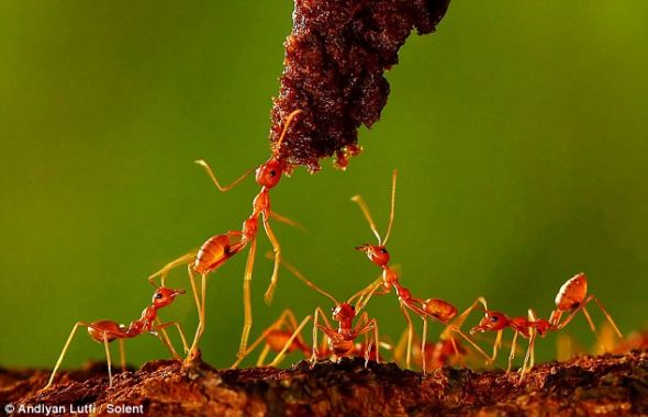 蚂蚁像人类一样,也对擅闯家园的不速之客向来不欢迎。所以,当一只飞虫落在它们中间时,这些蚂蚁立即围上去展开攻击。正如这张照片所显示,从天而降的飞虫虽然体型至少是蚂蚁的两倍,但在与团队力量的对决中毫无取胜之机。这是印度尼西亚业余摄影爱好者安迪亚恩·鲁特菲(Andiyan Lutfi)拍摄的一组微距照片中展现的画面之一。