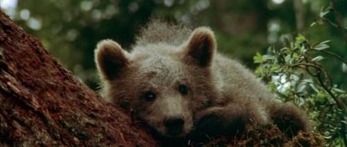 这部《子熊故事》也叫《熊的故事》,电影并不是像它的名称一下是一部简单的动物世界。都说小孩和动物是最难控制的演员,这主要是在交流上的阻碍很大,尤其是动物。但是这部影片的主角恰恰是一只大熊和一只小熊,在影片中我被他们所展示的,真实的动物生活深深震撼了。比如大熊的怒吼,小熊的忧伤眼神,猎豹的凶狠表情,都是正面的极近镜头,我想这种镜头最难捕捉,尤其是将动物内心世界和大自然的声音融为一体。