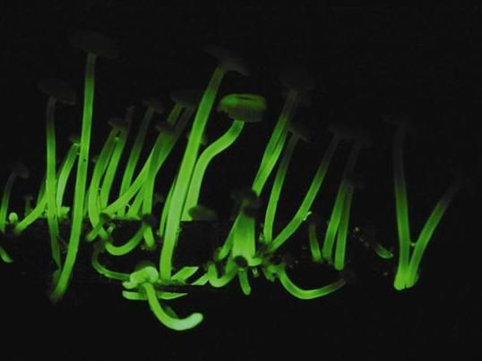这种在暗处会发光的蘑菇原产自巴西圣保罗附近的一片森林里,现在这片森林已经消失。这种名叫Mycena luxaeterna的蘑菇高达8毫米,它会不断发光,一天二十四小时都会发出可怕的绿光。尽管地球上有150万种真菌类,但是只有75种会发光。