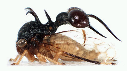 HELMET BUZZ: Treehoppers display an endless diversity of forms, most of which are conveyed by a bizzare structure called the helmet, an novel homologue to wings no longer involved in flight. (Photo: Nicolas Gompel)