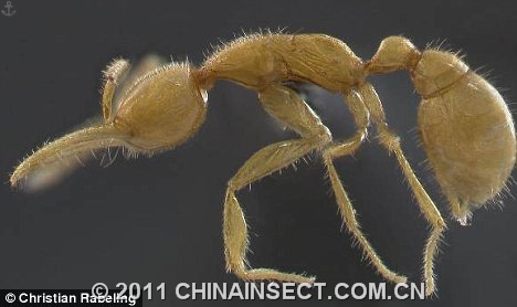 美国科考队的一名科学工作人员介绍,这种蚂蚁名为Martialis heureka,应该生活于1.2亿年以前,是最早期的史前蚂蚁的后代。