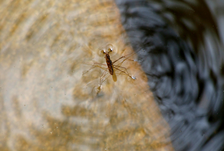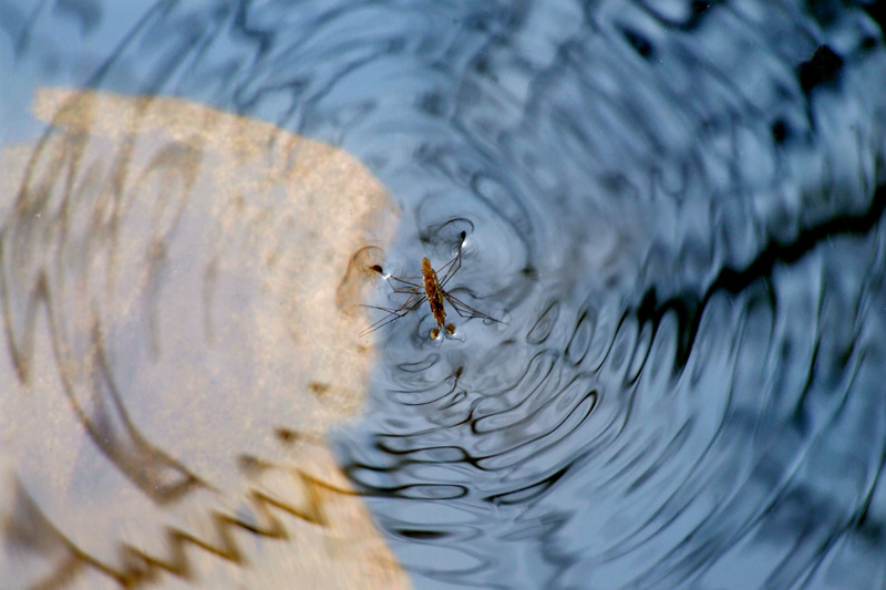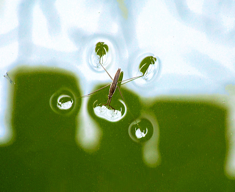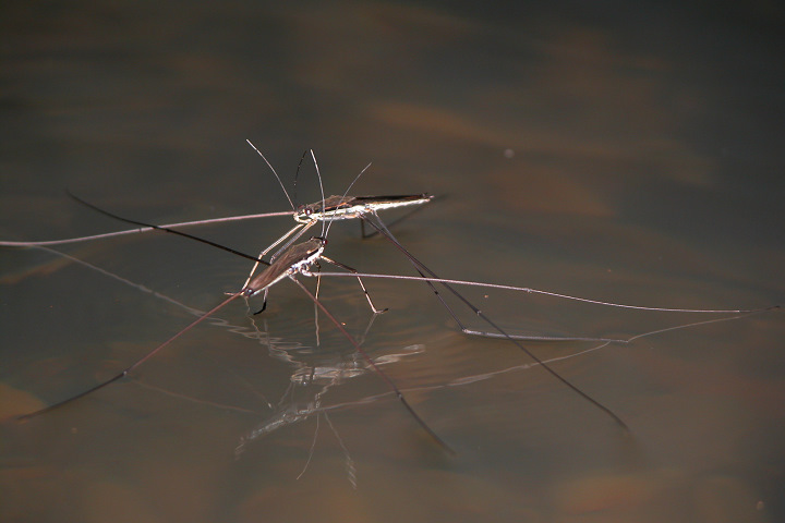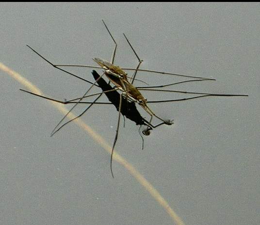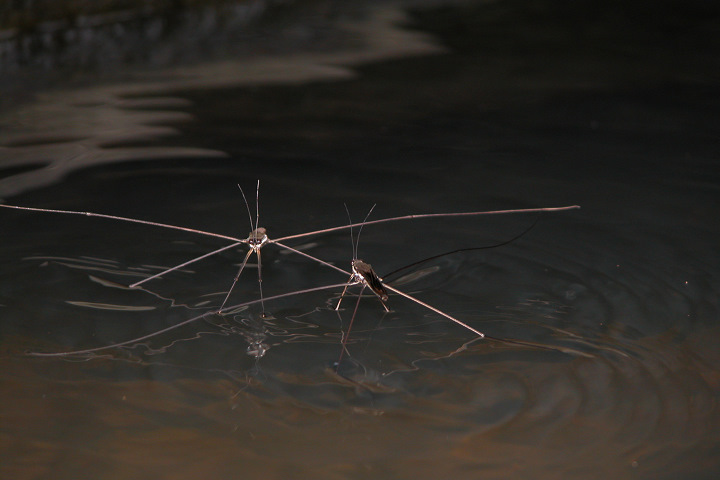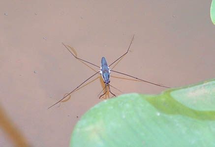 乡下天气晴好的夏天傍晚,在小鱼塘的水面上,以及一些水面平静的河面上,经常都看得到几只黑色小虫子,在欢快地“跳舞”,动作移动得飞快,就仿如人们在冰场上遛冰舞一样,动作敏捷迅速,一晃眼间,已从这里滑到另一个地方去了。