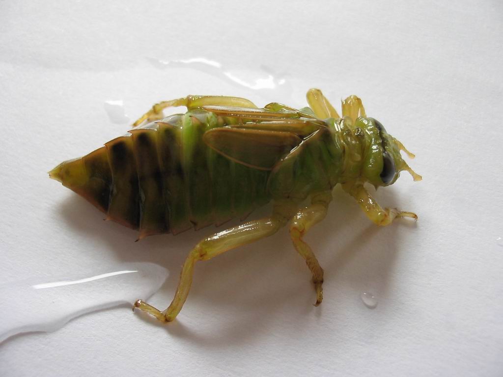 水虿就这样地趴在水底的砂石泥土上爬来爬去,或者在水草间游来游去,在水里生活上两三年,甚至七八年时间,蜕十多次皮,最后才沿水草爬出水面,再经蜕最后一次皮,羽化为成虫,也就是蜻蜓了,可以活上几个月的寿命。拿上网罩,去野外捕蜻蜓,是很多小孩子都玩过的事情,那里捕的多是深褐色甚至红色的蜻蜓。