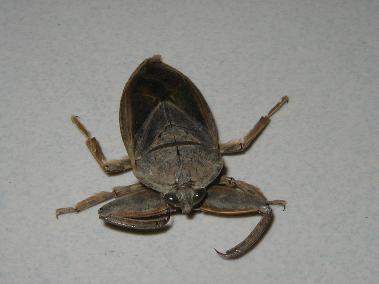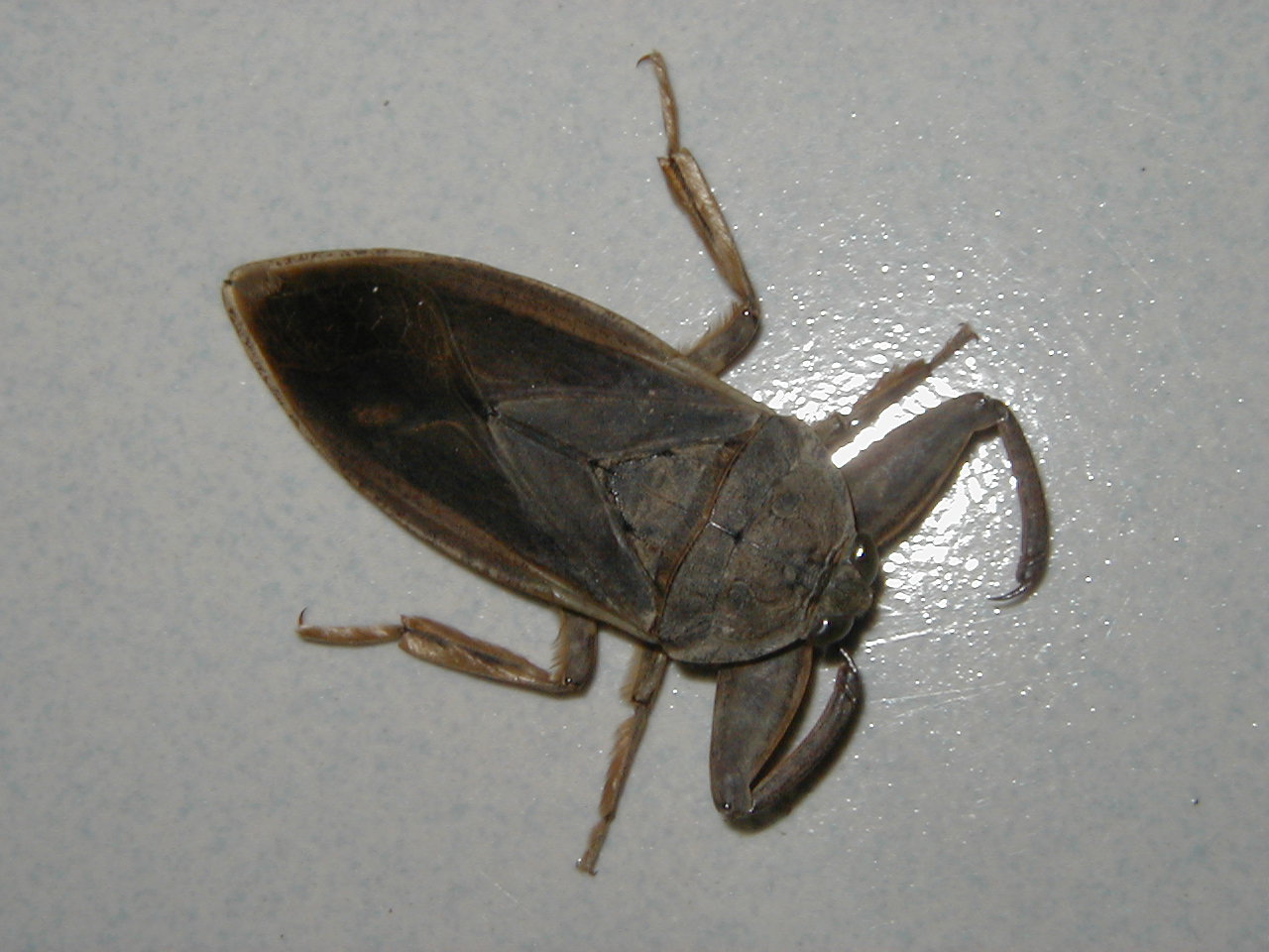 蝎蝽、负子虫、大田鳖,都是外型很相似的虫子。蝎蝽与负子虫的区别,看它们的个子身长、前足大小、尾巴长短。而负子虫与大田鳖之间,大个子的大田鳖可让人明显的区别得出,但若是个子一样大的两者跑来,那它们二者实在是太像太难区别了。最简单的分辨方法是:负子虫的一对前爪,两个都带着弯钩,像伸在身前的两把镰刀,而大田鳖的一对前爪只有其中一只脚带钩,也就是:它只有“一把刀子”。