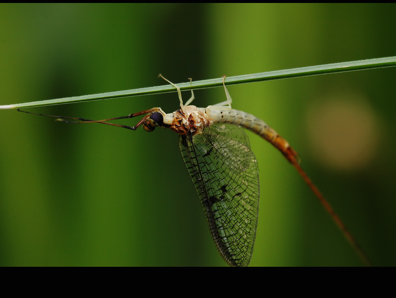 蜉蝣,是个朝生暮死的虫子,寿命很短,只有几个小时。